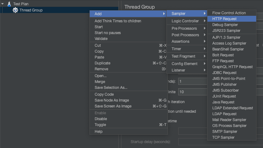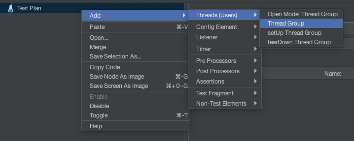 여기서 Thread Group 설정을 진행하는데, 몇명의 User를 만들것인지 선택하는 것이다. 1Thread = 1 Person이라고 생각하자.