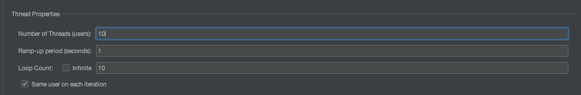 10명의 인원을 선택하고, 각각의 user들이 10번씩 API를 호출하도록 설정한다.