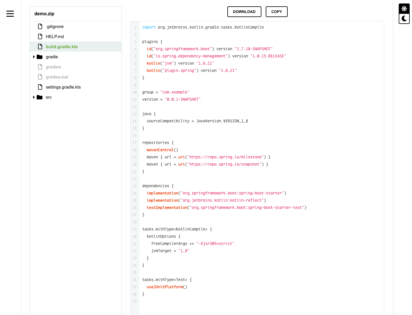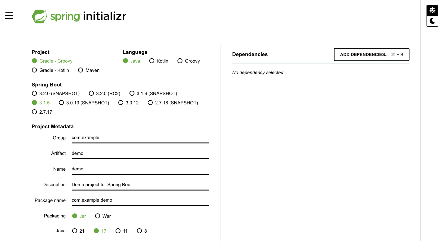 start.spring.io 여기서 내가 원하는 셋업을 선택하고 하단의 Explore을 클릭하면,