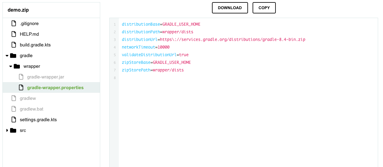 하단의 EXPLORE CLICK spring이 default로 가져가는 build.gradle의 version setup을 확인할 수 있다.
